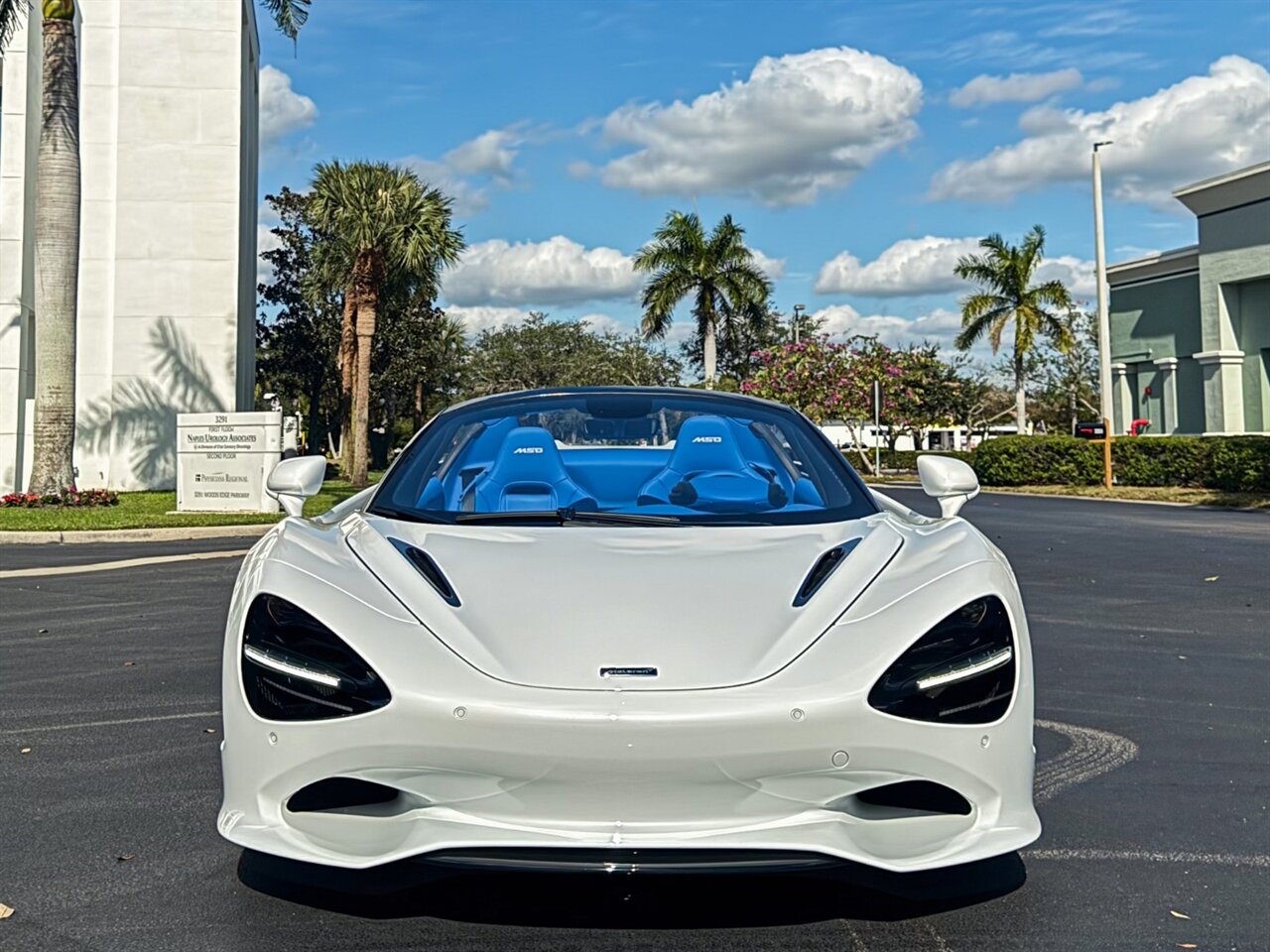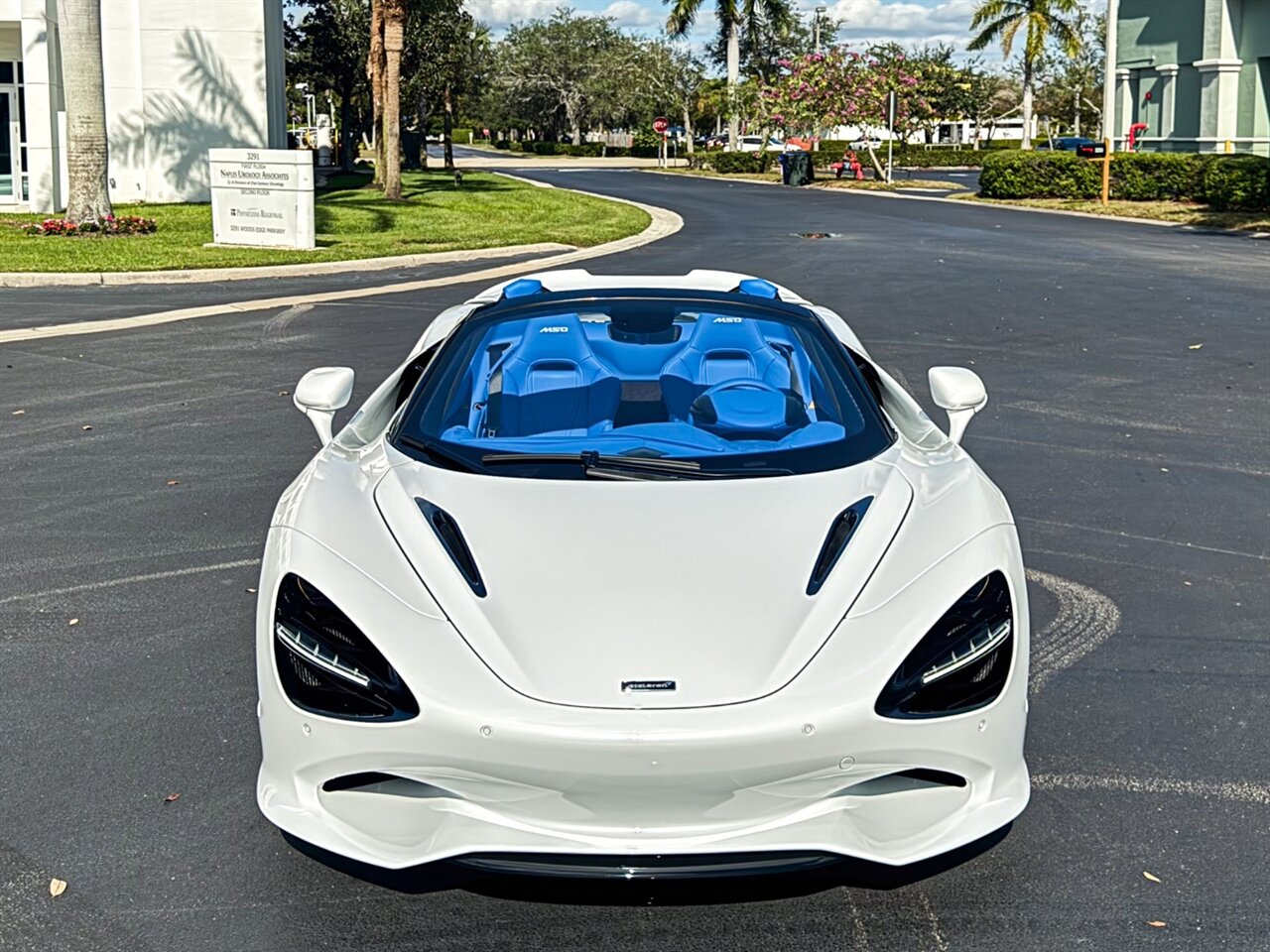 2025 McLaren 750S Spider. Silica White Exterior with MSO Bespoke Blue Leather Interior. Features Include: 740 Horsepower Twin Turbo 4.0L V8 Engine, Seven-Speed Dual Clutch Seamless Shift Automatic Transmission, Carbon Ceramic Brakes, Brake Calipers in Blue, 19" Front & 20" Rear 10 Spoke Wheels, Front Lift, Active Rear Spoiler, Sports Exhaust, Rear Spoiler in Body Color, Gloss Black Front Lip, Power Retractable Hard Top, LED Headlights & Tail Lights, LED DRLs, Front & Rear Parking Sensors, Power Folding Outside Mirrors, Soft Close Door Latching, Digital Instrument Cluster, Blue Leather Wrapped Steering Wheel, Shift Paddles, 750S Performance Interior, Black Seatbelts, Selectable Drive Modes, Launch Control, Leather Dashboard, Touchscreen Infotainment with Bowers & Wilkins Audio System, 360 Degree Park Assist, Dual Zone Automatic Climate Control, Smartphone Integration, Navigation, Bluetooth. Priced at only $389,995. Financing available. We ship worldwide. We pay top dollar for lightly used sports cars! Call or text our Product Specialists today at 239-522-2262 or email us at sales@gcmworks.com. Fees and Taxes: $1199.00 Doc Fee on all Purchases. Out of state buyers are responsible for all state, county, city taxes and fees, as well as title/registration fees in the state that the vehicle will be registered.